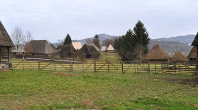 Die Holzstrukturen präsentieren die architektonischen Techniken der Handwerker von Maramureș mit detaillierten Schnitzereien und spezifischen Konstruktionsmethoden.