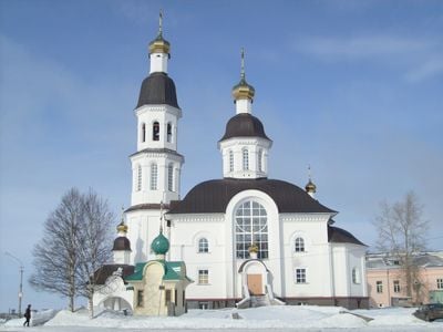 Die Kirche liegt in der Nähe des Flusses Nördliche Dwina und hält regelmäßige Besuchszeiten für Gläubige und Besucher ein.