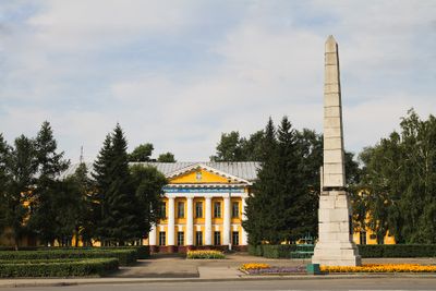 Demidovsky Obelisk, Granitobelisk am Demidow-Platz, Barnaul, Russland.